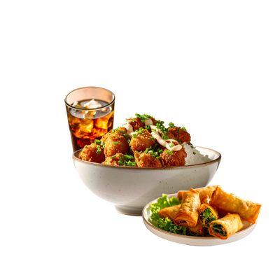 Une explosion de saveurs : riz parfumé, poulet pané frit mariné, sauces maison et toppings croustillants pour un plat gourmand et irrésistible ! Accompagné d’une boisson et d’un side aux choix