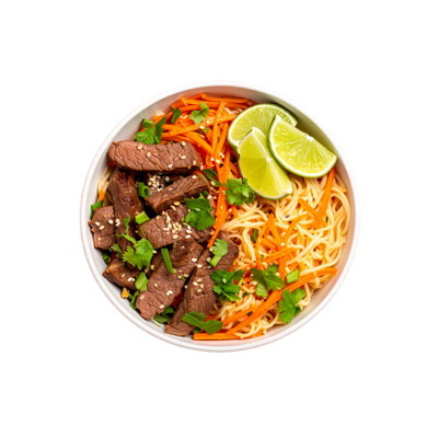 Ingrédients : Nouilles de blé sautées au wok, émincé de bœuf au soja et oignons, carottes, chou, soja frais, coriandre, ciboulette, sauce soja maison.
